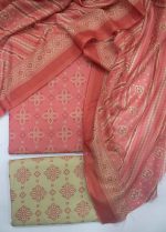 3 Piece Peach Color Lawn Printed UnStitched Suit with Lawn Dupatta & Printed Trouser.