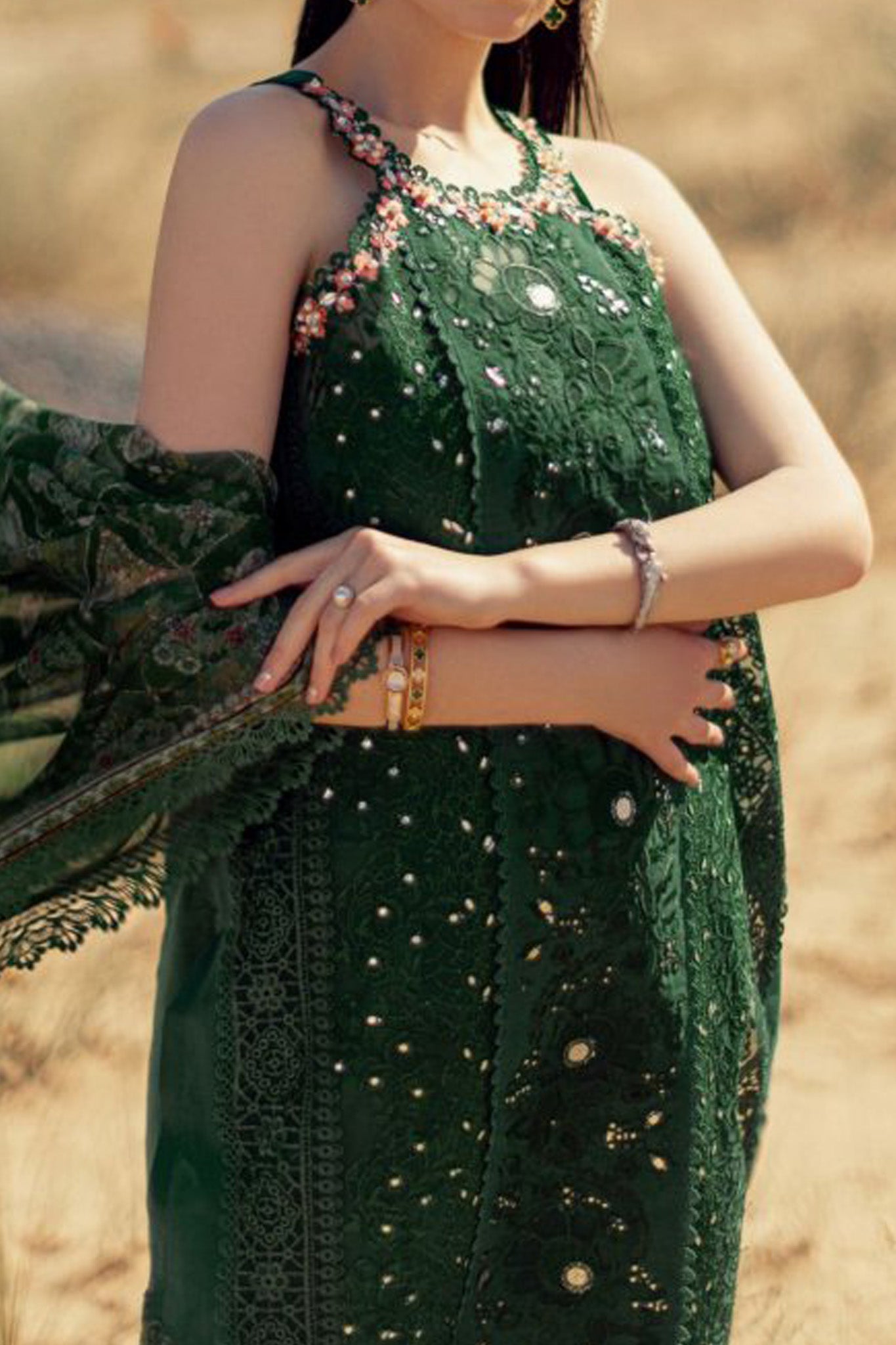 Laser panni embroidered lawn front center panel Panni embroidered front side panels Embroidered extreme front side panels…